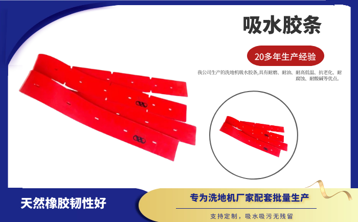 產(chǎn)品說明:吸水膠條是洗地機吸水扒上的重要部件,作用就是與地面接觸,產(chǎn)生一個密封的空間,把地面上的污水通過風(fēng)機進行回收。吸水膠條一般分為耐油型(進口PU原料)和普通型(進口NR原料)兩種。